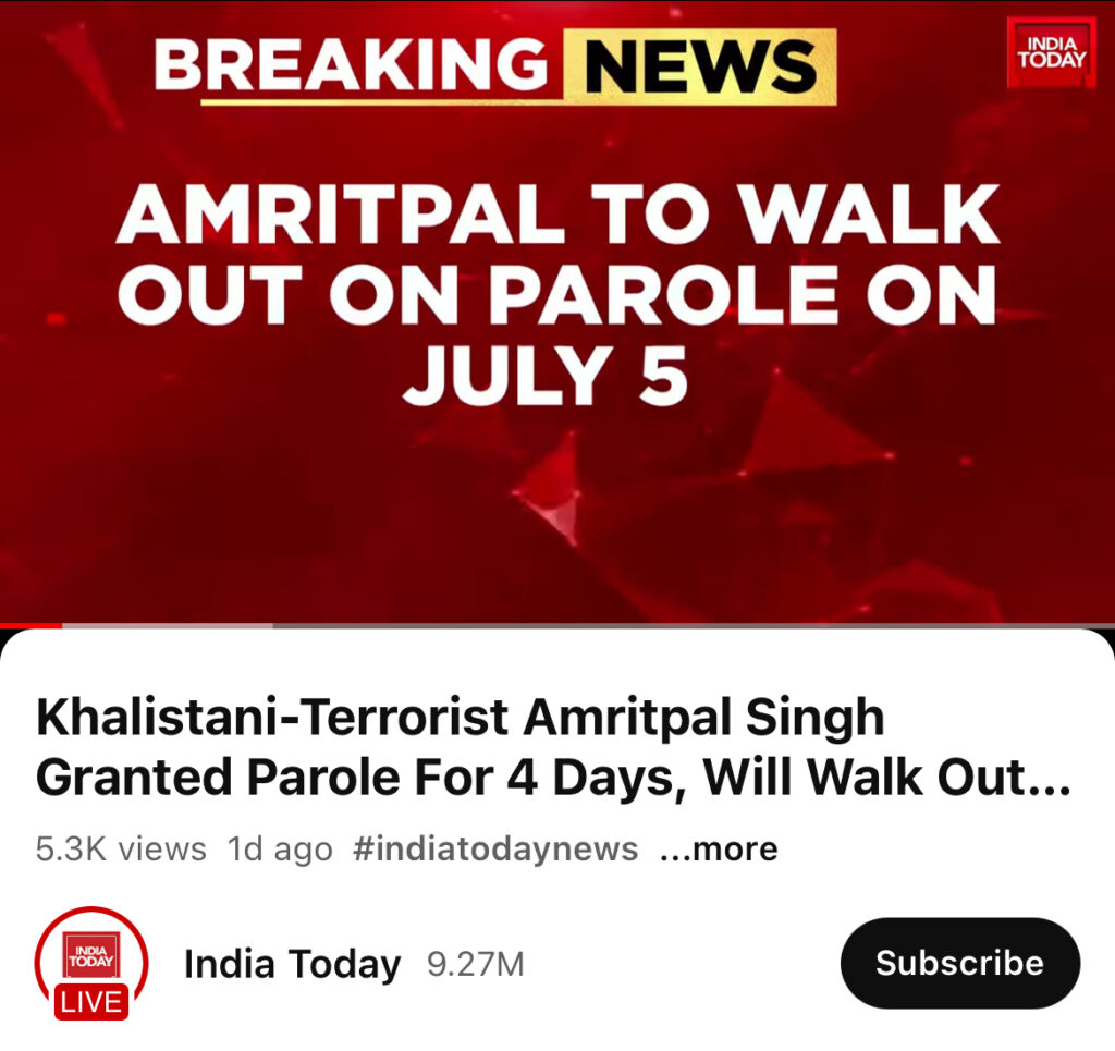 Indian mediaโs disgraceful labeling of Bhai Amritpal Singh as a terrorist exemplifies their blatant bias and irresponsible journalism. This deliberate mischaracterization reveals an agenda to vilify and delegitimize the Khalistani movement, rather than providing fair and balanced reporting. Such reckless use of inflammatory language not only distorts the truth but also incites hatred and misunderstanding among the public.